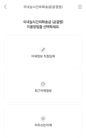 3. [국내실시간외화송금(금결원)]을 선택하세요.
