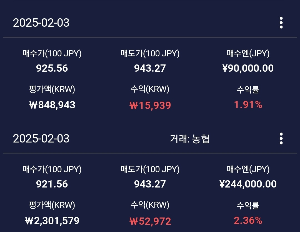 16. 키움증권에 입금된 엔화를 환전하여 엔화로 수익을 얻었습니다.