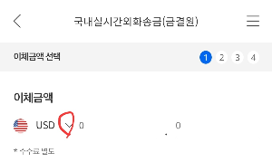 9. 이체 통화를 선택한 후 이체할 금액을 직접 입력해 주세요.