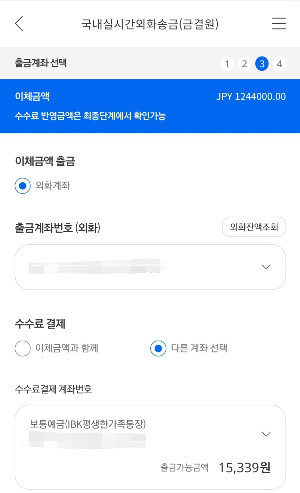 2) 출금계좌번를 확인하세요. 기업은행 외화계좌가 하나라면 자동입력되니 외화계좌번호만 맞게 입력이 되었는지 확인하세요.