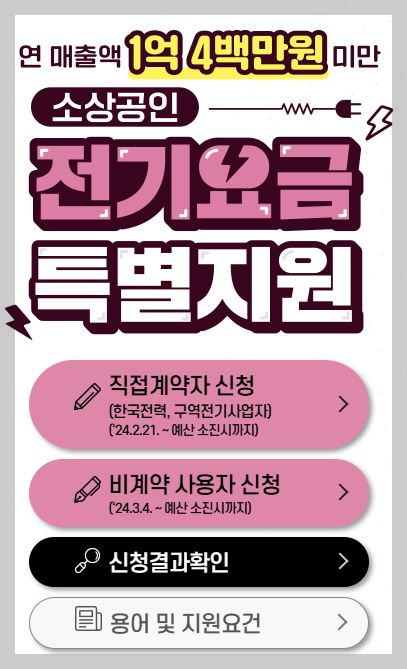 ● **소상공인 전기요금 특별지원 신청 홈페이지**에서 간단히 신청 가능.