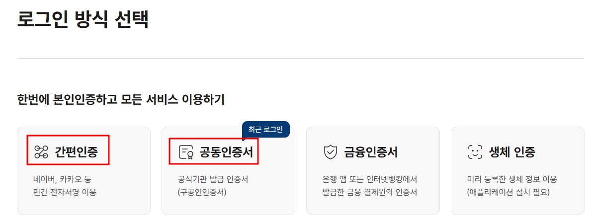 ✅ 공동인증서 또는 간편인증 등의 본인 인증 방법이 필요합니다.