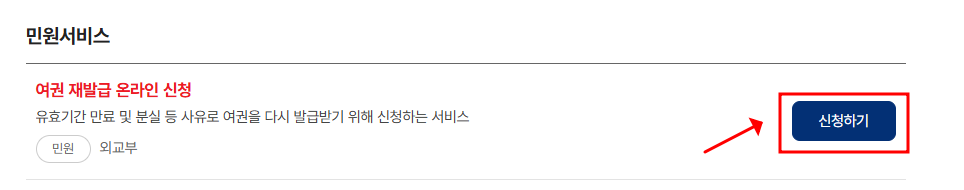 2) 정부24 여권 재발급 신청 페이지로 이동합니다.