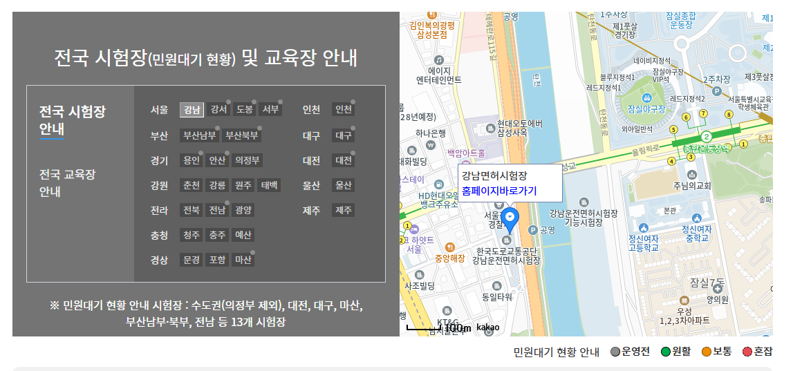 - 운전면허시험장은 운전면허 갱신 신청바로가기 사이트에서 해당 지역을 검색할 수 있습니다.