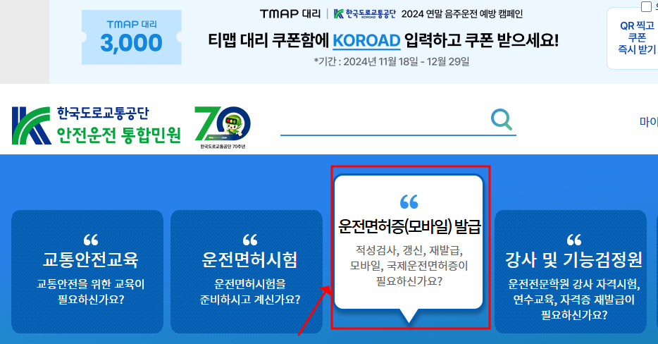 ✔ 도로교통공단 안전운전 통합민원 사이트 접속.