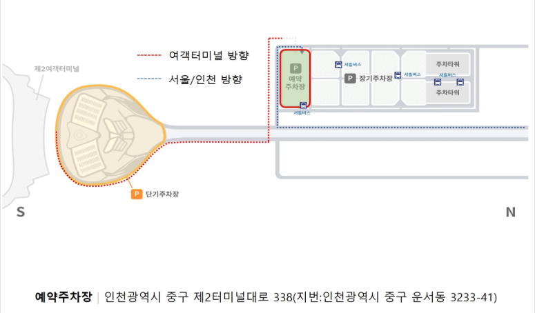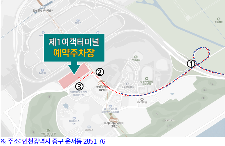 인천공항 장지주차장 제1여객터미널 - 제2여객터미널 주차장 안내도