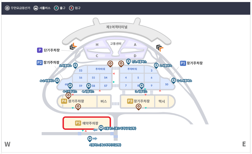 - 주차장에서 셔틀버스 서비스를 통해 터미널까지 이동 가능합니다.