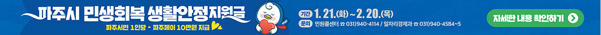 이번 지원금은 파주시민의 생활 안정과 지역경제 활성화를 위한 조치이므로, 해당되시는 분들은 기간 내에 신청하여 혜택을 받으시기 바랍니다.