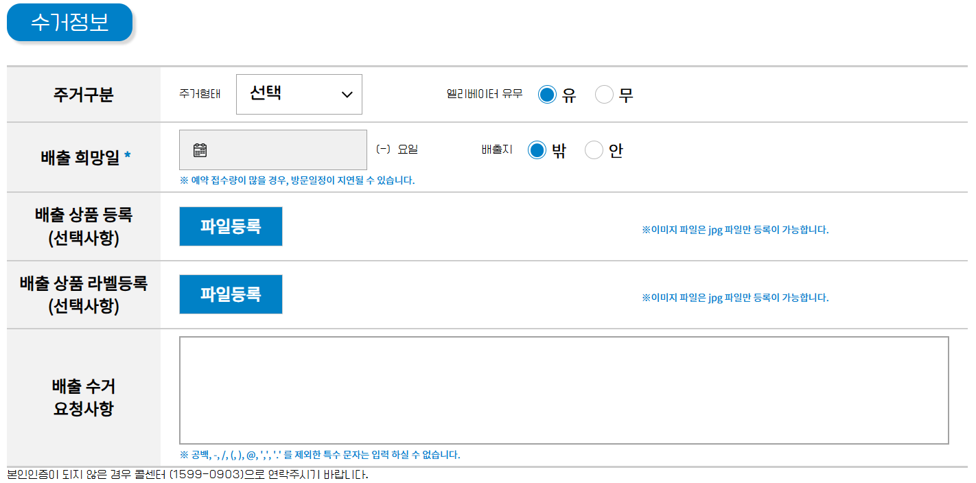 ✔ 수거 기사가 가정 내에서 직접 제품을 이동하는 서비스는 제공되지 않습니다.
