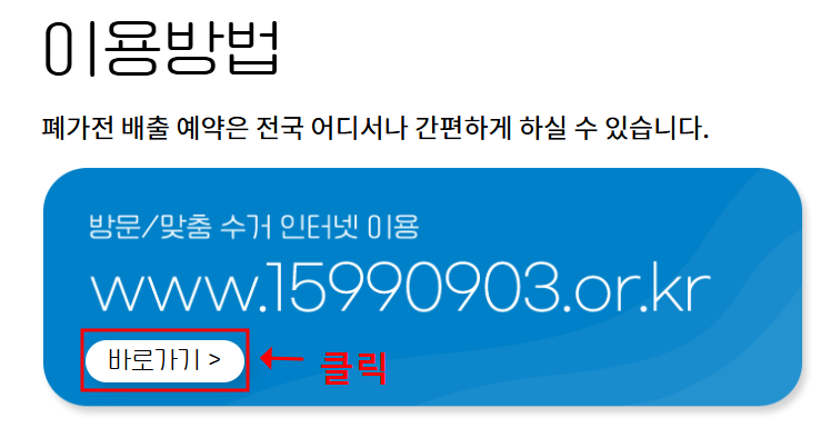 ✔ 폐가전 무상방문 수거 서비스 공식 홈페이지 (www.15990903.or.kr) 접속