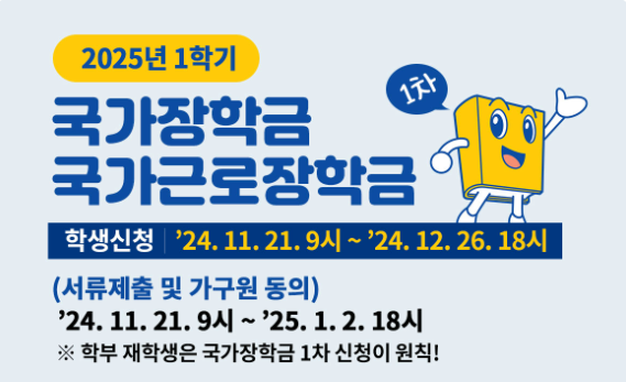 ✅ 재학생 1차 신청 : 재학생은 1차 신청이 원칙이며, 2차 신청 재학생은 국가장학금 지원 제한