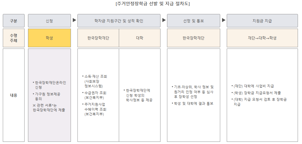 - 학기 중 최대 월 20만 원 한도로 주거 관련 비용 지원