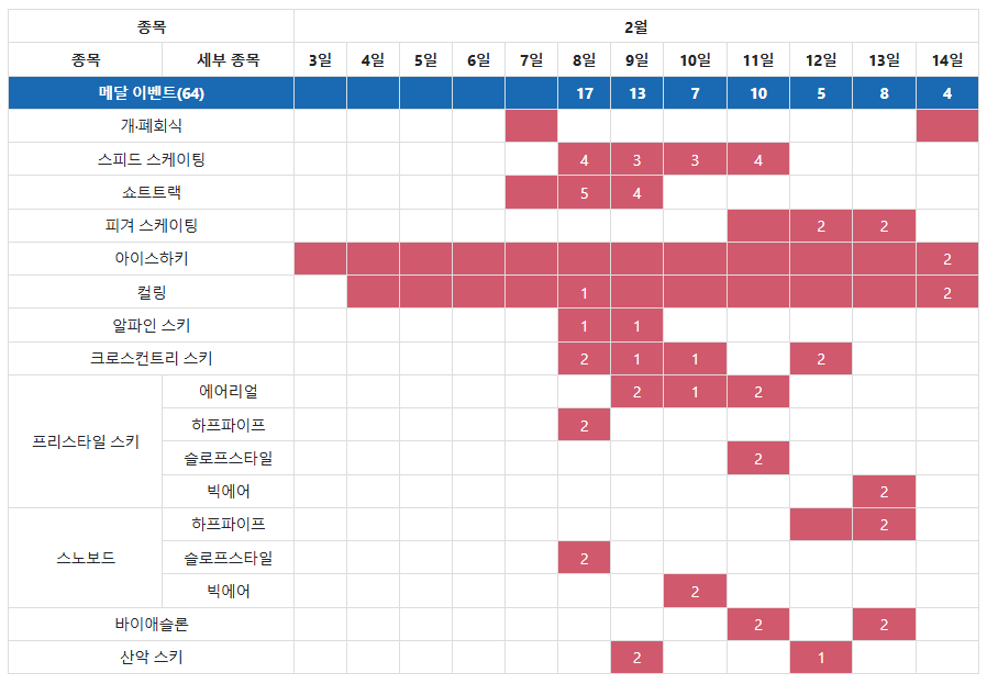 2. 하얼빈 동계아시안게임 대한민국 주요 경기 일정